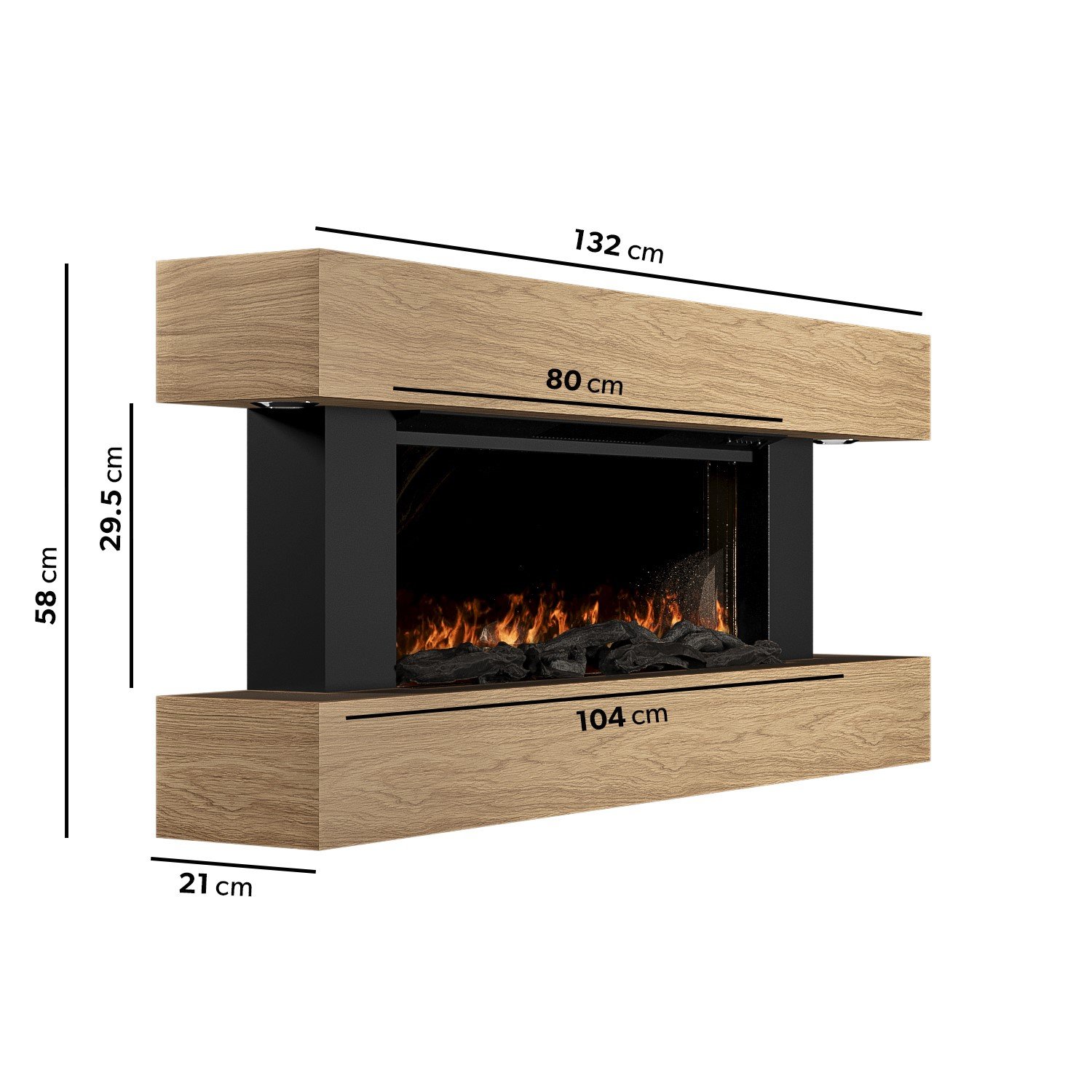 Product Specifications – Amberglo Oak Wall-Mounted Electric Smart Fire Place with Surround