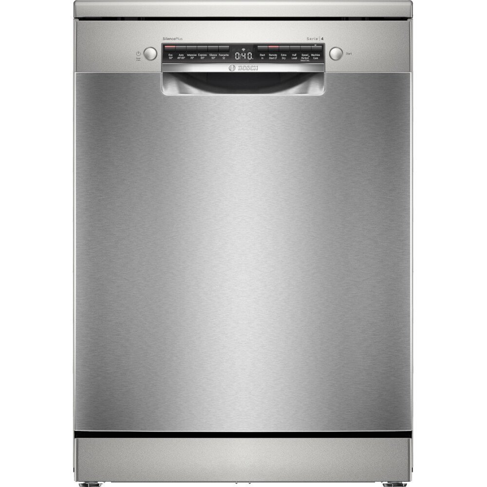 The Bosch SMS4EMI06G Series 4 Dishwasher delivers reliable and efficient dishwashing performance for everyday kitchen use. Designed to handle a full load of dishes, glasses, and cutlery with ease, it combines practical functionality with straightforward operation. Its well-treated wash programmes ensure thorough cleaning while maintaining gentle care for your kitchenware.