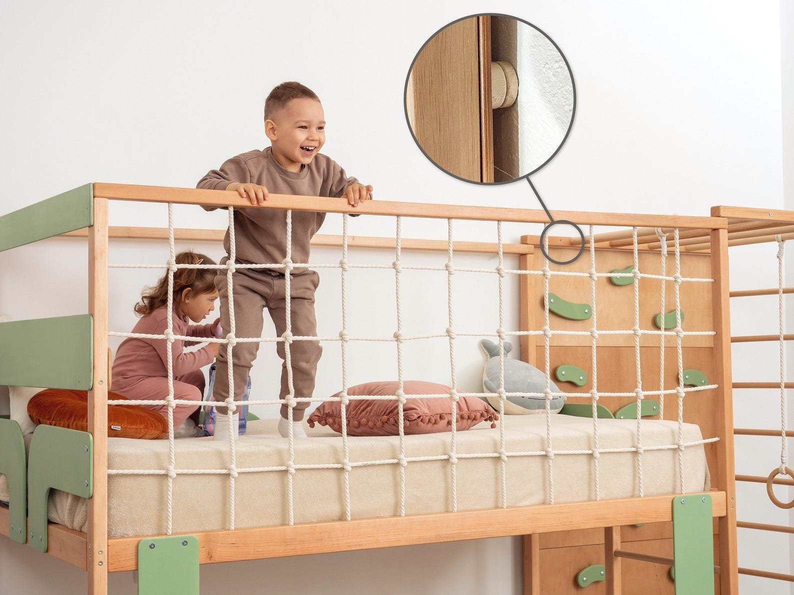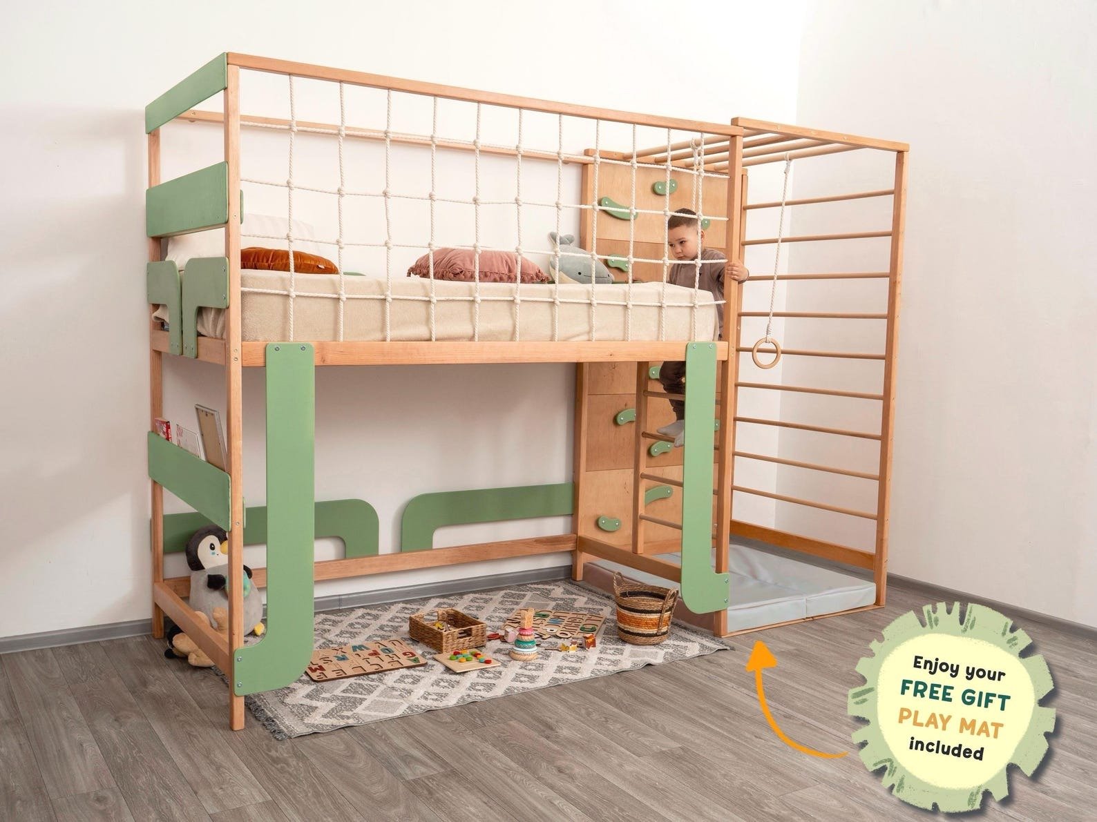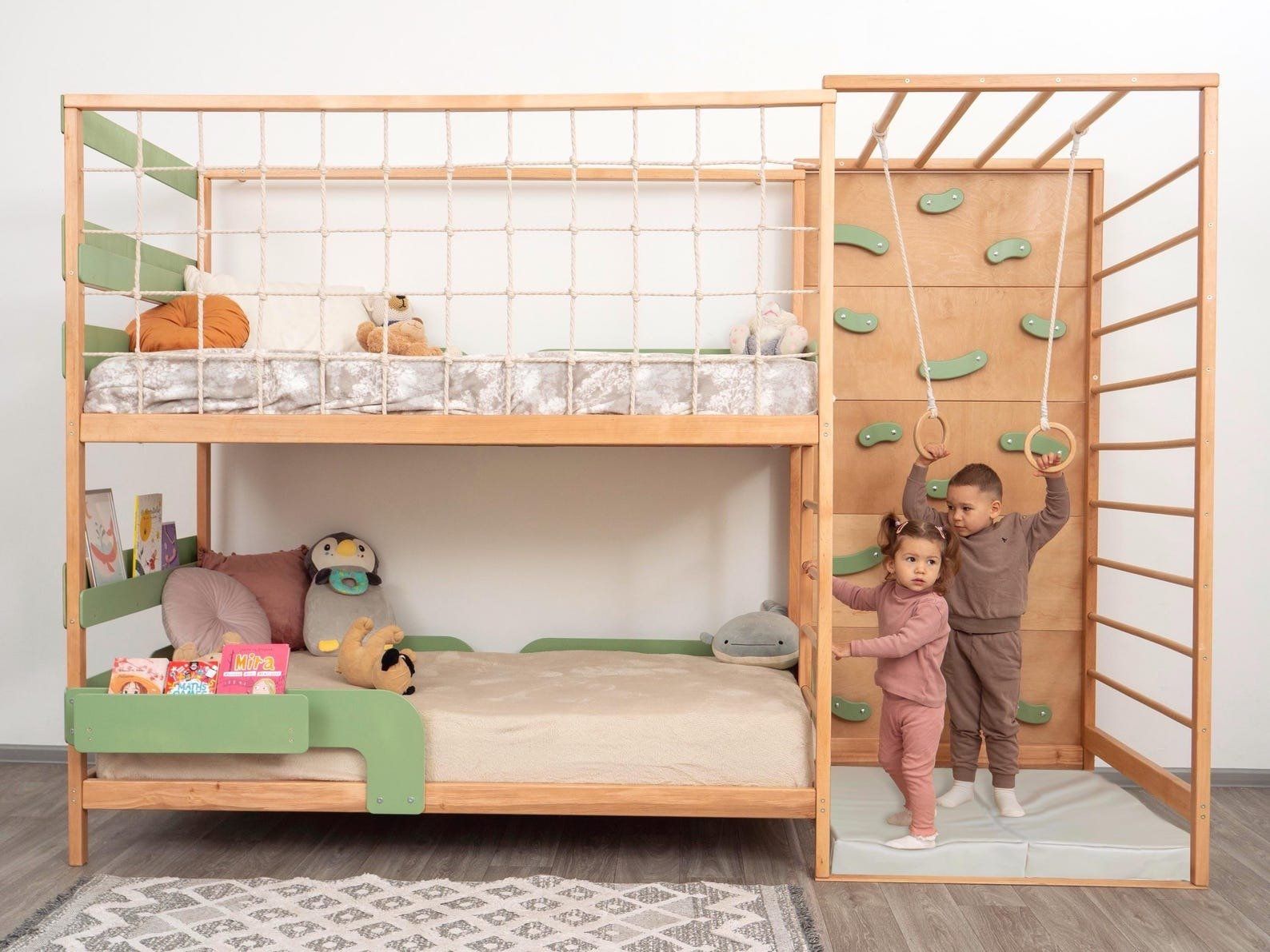 • Montessori-style bunk bed for kids and toddlers