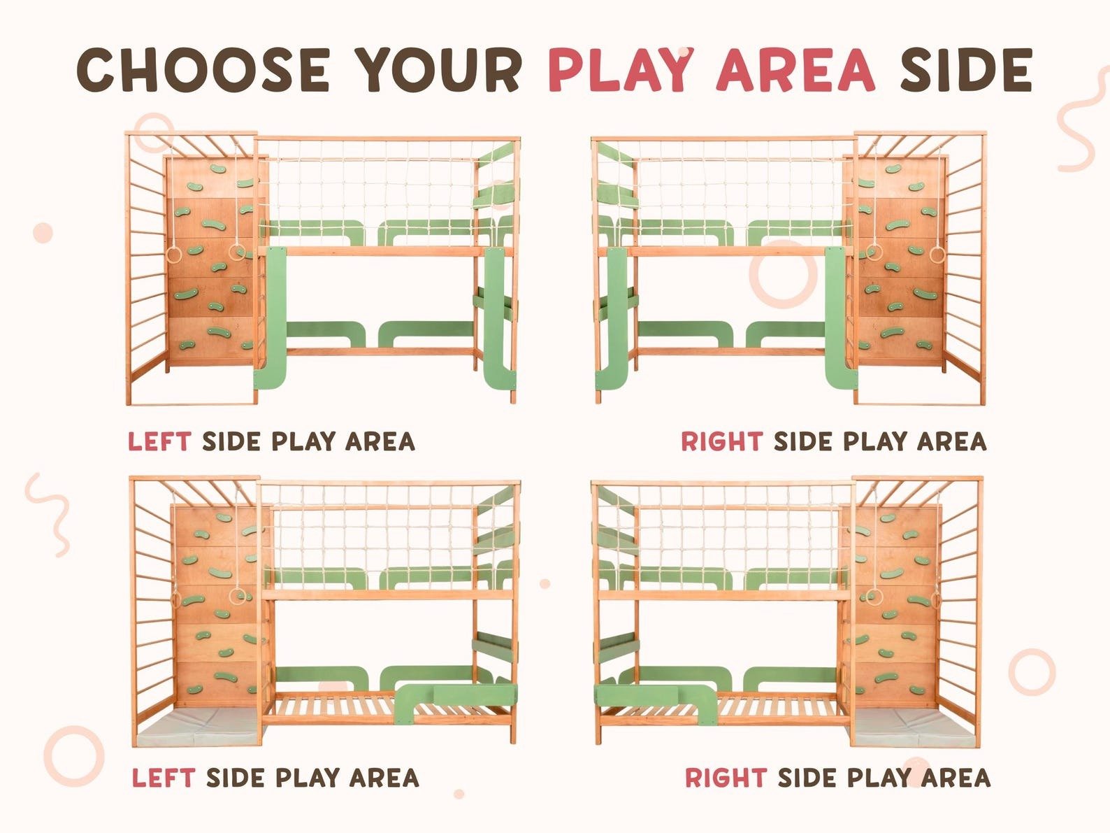 • Option to add safety rails, canopy, or play accessories