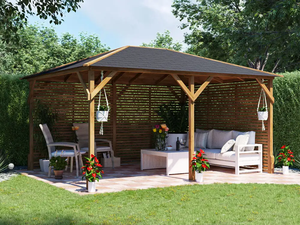 The Dunster House Utopia 430 Slatted Wall Gazebo is a high-quality outdoor structure designed to create a stylish and functional shelter in your garden, patio, or backyard. With its modern slatted walls and spacious footprint, it provides shade, comfort, and a defined space for relaxing, dining, or entertaining outdoors. The design balances openness with privacy, making it suitable for a variety of outdoor living needs.