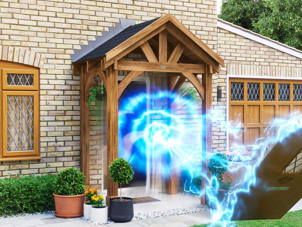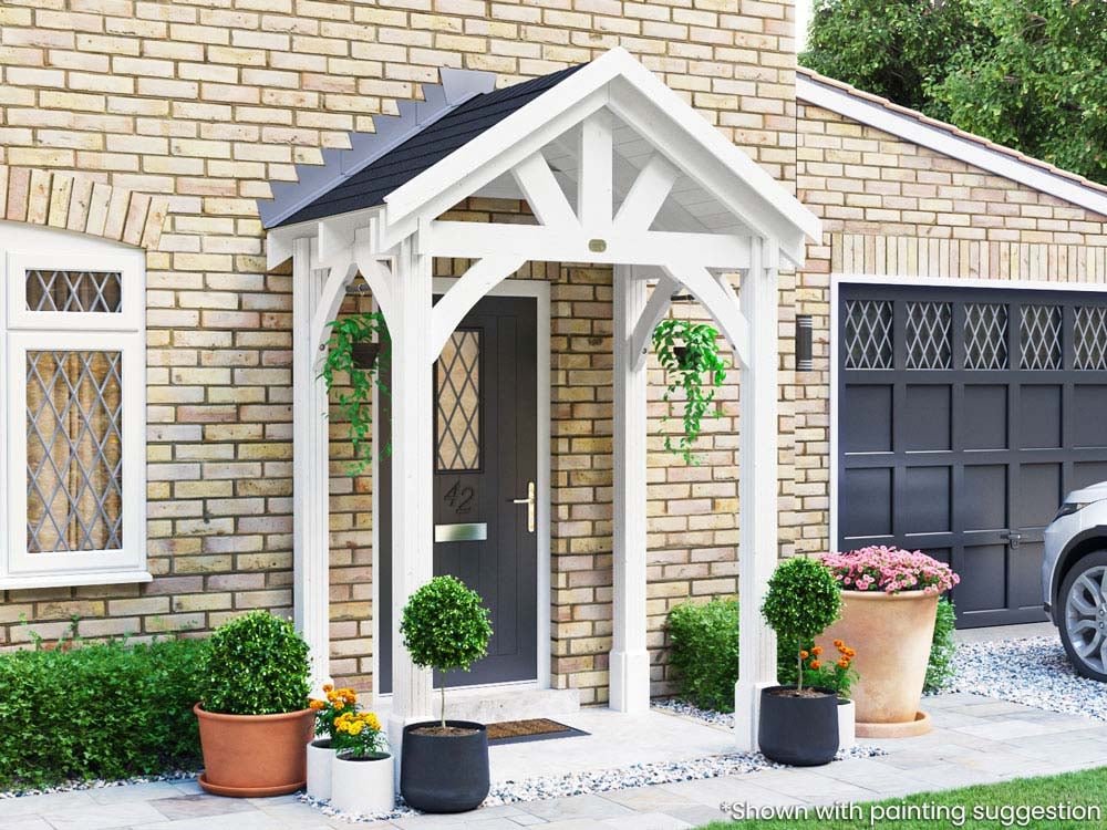 The Dunster House Wooden Porch Canopy Kit is a sturdy and attractive door shelter designed to protect entrances from rain and weather exposure. Featuring a full-height four-post design, it creates a defined porch area while adding character and practicality to your home’s exterior.