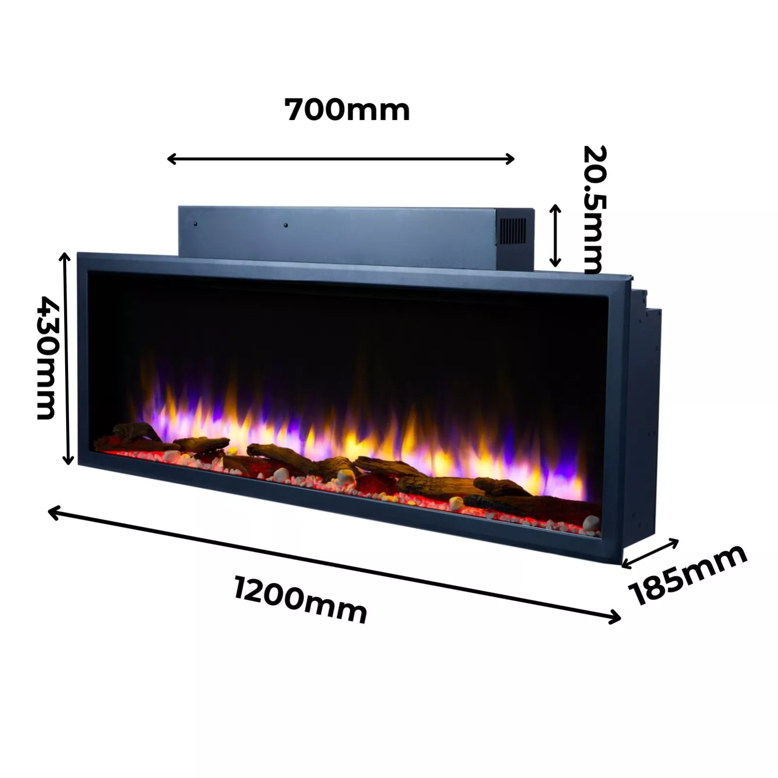 The Endeavour Fires Media Wall Inset Electric Fire combines contemporary design with striking visual effects to create a stunning focal point in any living space. Featuring a 3D fuel bed and dynamic LED flame technology, this inset electric fire delivers a realistic and immersive flame experience without the need for a chimney, flue, or gas supply.