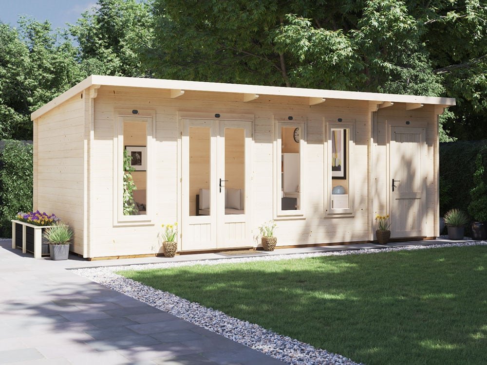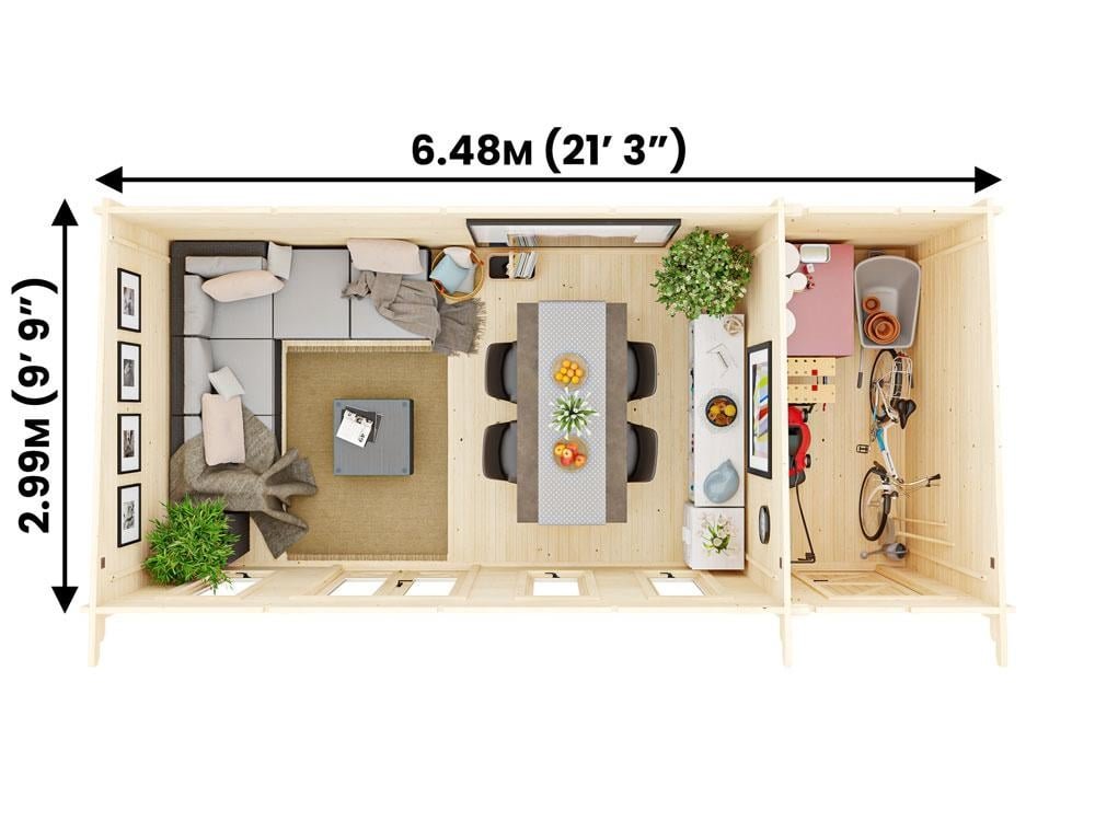 Log Cabin With Side Shed Storage W6.5m x D3m