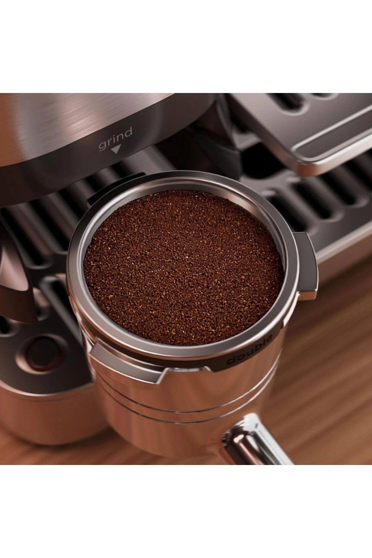 Is machine mein conical burr grinder hota hai jisme multiple grind settings hoti hain. Integrated scale coffee beans ka exact weight measure karti hai, jis se consistent aur balanced extraction milti hai.