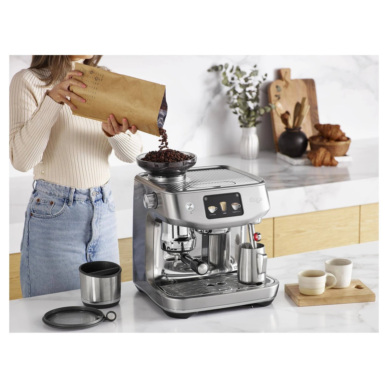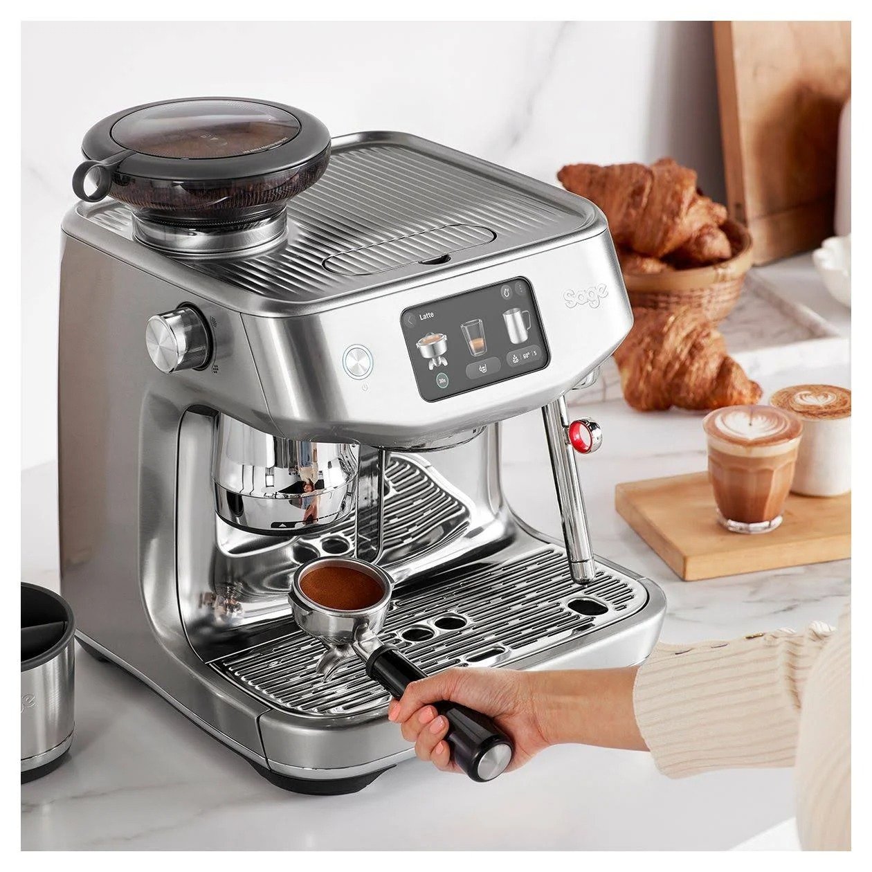 Auto grind, dose & tamp into the professional-style 58 mm portafilter and use Barista Guidance to help you create specialty coffee at home. Auto MilQ™ delivers silky microfoam hands-free, with settings optimised for dairy, soy, almond and oat, plus Auto