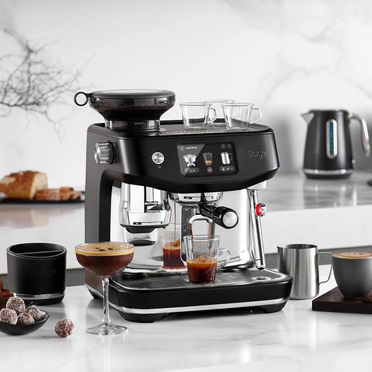 Queue your milk to start automatically once extraction has finished. The new highly responsive touch screen features pre-programmed café favourites including new Cold Brew & Cold Espresso. All powered by the ThermoJet® heating system which provides fast heat up and is up to 32% more energy efficient*.